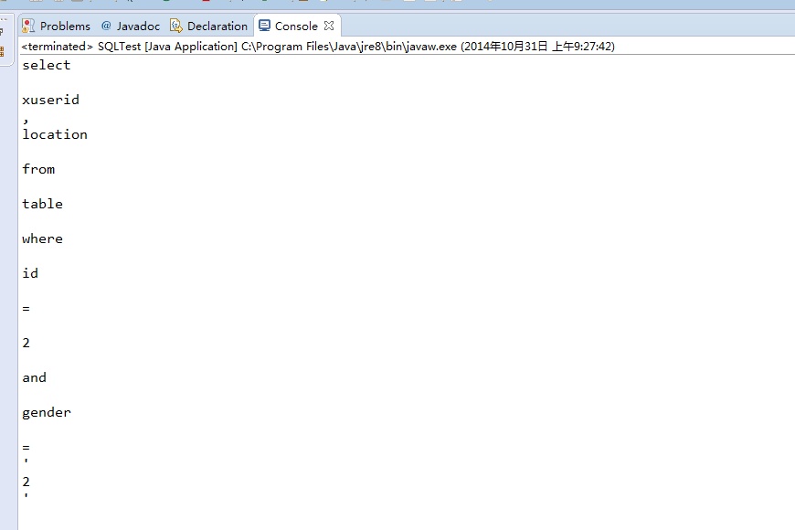 但是如果 讲SQL语句改为:"id =2" 即把=后面的空格删掉话 则输出下一个'and'单词。 所以StringTokenizer是通过String.split("\s")完成的分割。