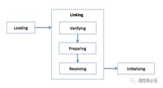 1.装载(loading):负责找到二进制字节码并加载至JVM中,JVM通过类名、类所在的包名、ClassLoader完成类的加载。因此,标识一个被加载了的类:类名 + 包名 + ClassLoader实例ID。