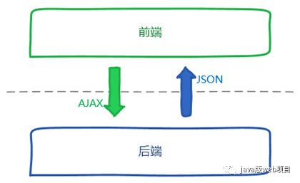 REST全称是Representational State Transfer(表述性状态转移),它是Roy Fielding博士在2000年写的一篇关于软件架构风格的论文,此文一出,威震四方!国内外许多知名互联网公司纷纷开始采用这种轻量级的Web服务,大家习惯将其称为RESTful Web Services,或简称REST服务。]如果将浏览器这一端视为前端,而服务器那一端视为后端的话,可以将以上改进后的MVC模式简化为以下前后端分离模式,如下图所示: