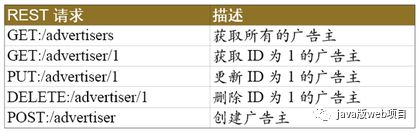 可见,请求路径相同但请求方式不同,所代表的业务操作也不同,例如,/advertiser/1这个请求,带有GET、PUT、DELETE三种不同的请求方式,对应三种不同的业务操作。