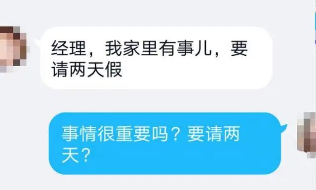 近日一位公司里的经理,在职场论坛中吐槽了他们公司里一位员工半夜给他请假的经过,领导说:公司里有位员工半夜11点的时候,发来信息要请假。员工请假,做为领导肯定要得知理由的,于是问了句:是什么事情要请假?