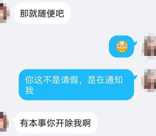 员工回答含糊不清,说自己也不知道,家里人让回去一趟。对于这种连理由都没有假,当然不能批,没想到员工却回复到:随便吧。员工略带嚣张的语气激怒了领导,结果员工回复到:有本事你开除我啊。看到这句回复领导愣了,咨询大家,员工这样请假,自己拒绝批准有错了?