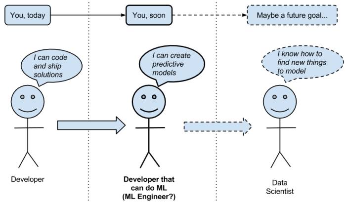 难怪,有一些诚实而又勤奋的开发者在思考如何做时,会认为在真正能够“做”机器学习之前,自己需要重新回到学校,拿一个硕士或者博士学位。