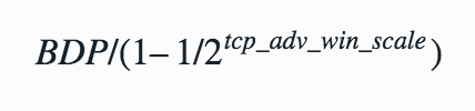 如果net.ipv4.tcp_adv_win_scale的值为1,则二分之一的缓冲空间用来做额外开销,如果为2的话,则四分之一缓冲空间用来做额外开销。因此recvbuffer的最佳值应该设置为: