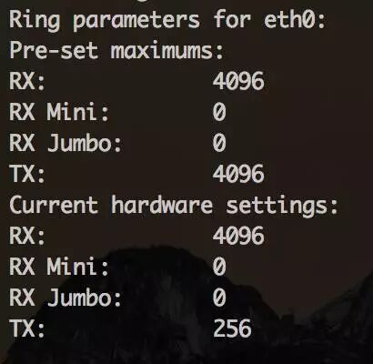 可以使用ethtool-g eth0查看当前RingBuffer的设置: