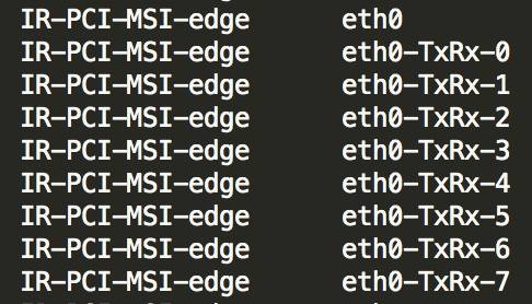 然后查看是否打开了网卡多队列。使用命令cat/proc/interrupts,如果看到eth0-TxRx-0表明多队列支持已经打开: