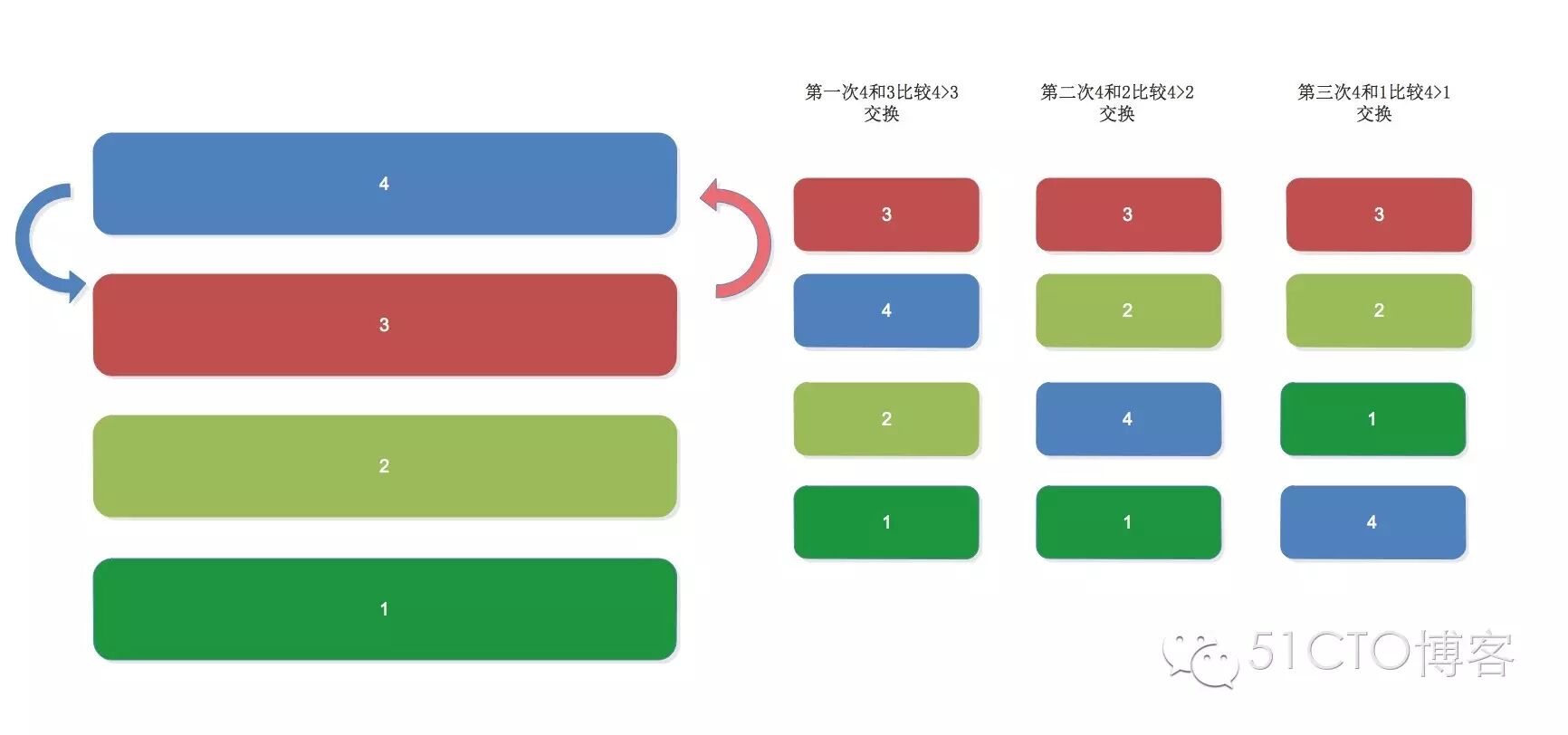 相邻两个值进行比较,将较大的值放在右侧,依次比较!