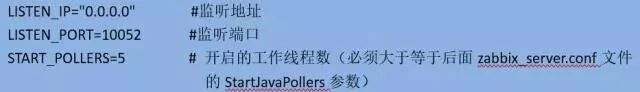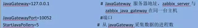 为了支持java-gateway, zabbix_server 或 zabbix_proxy 的配置文件中有以下内容需要配置: