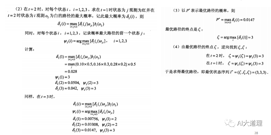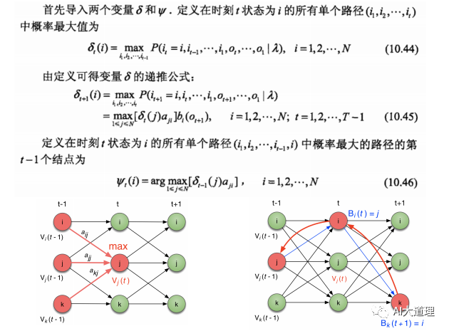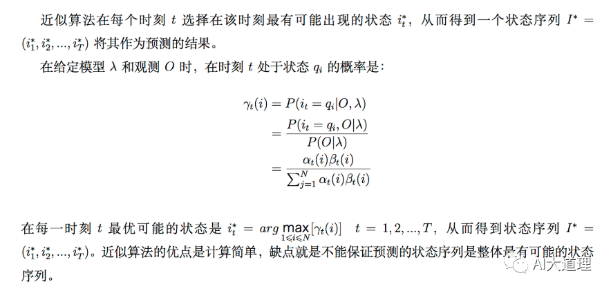 近似算法是前向计算时最大的就选了这个路径,也就是单步最大的路径组合成最优路径;而Viterbi是前向只计算并记住,根据最后最大的那个概率回溯选择路径。