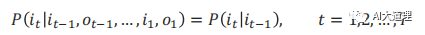 齐次马尔可夫性假设:隐藏的马尔可夫链在时刻t的状态只和t-1的状态有关。
