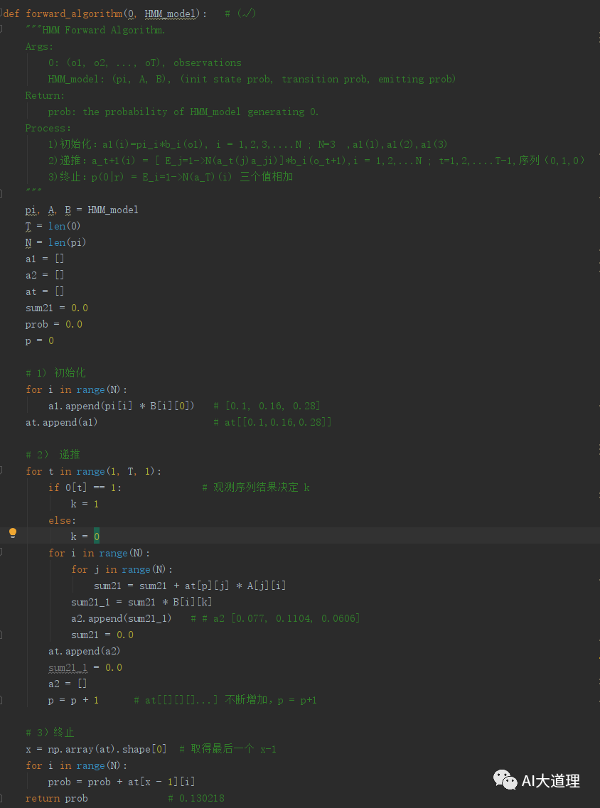 Viterbi算法需要先初始化一个HMM模型λ=(A,B,Π)。