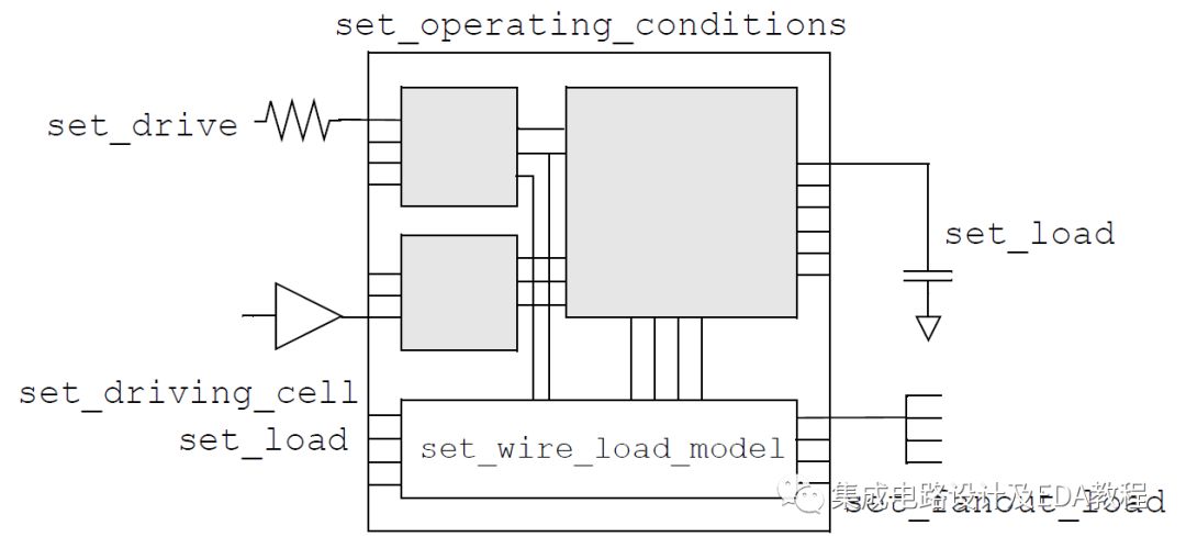 set_drive命令通过为输入端口指定电阻值的方法来为其定义外部驱动强度。在逻辑综合工具进行优化期间,工具根据设置的驱动强度来计算由该输入端口驱动的逻辑电路的延迟。