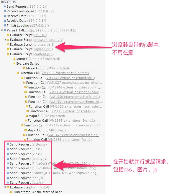 注意:发起 js 文件的下载 request 并不需要 DOM 处理到那个 script 节点,比如:简单的正则匹配就能做到这一点,虽然实际上并不一定是通过正则:)。这是很多人在理解渲染机制的时候存在的误区。