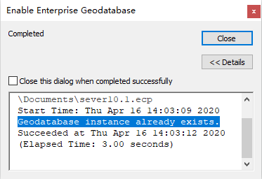 ArcMap注册空间数据库时遇到Geodatabase instance already exists.时应该怎么办