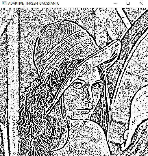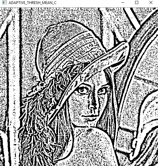 adaptiveThreshold(src, maxValue, adaptiveMethod, thresholdType, blockSize, C, dst = None)