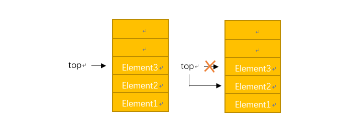 出栈(pop)操作,是在栈不为空的情况下(注意一定要进行判空操作),将栈顶的元素删除,同时top指针,next向下进行移动即可的操作。