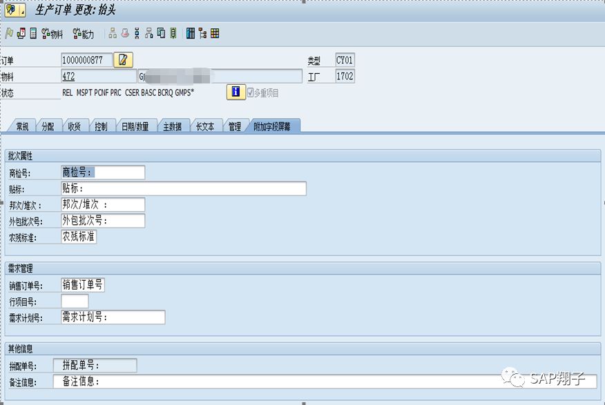 Step2. CMOD 使用客户增强:PPCO0012 生产订单:显示/更改订单抬头数据