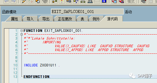 出口函数:EXIT_SAPLCOKO1_001 里的逻辑