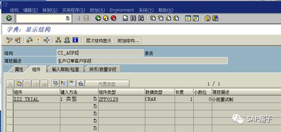 Step1. 结构 CO_AUFK 里增加自定义字段:ZZZ_TRIAL
