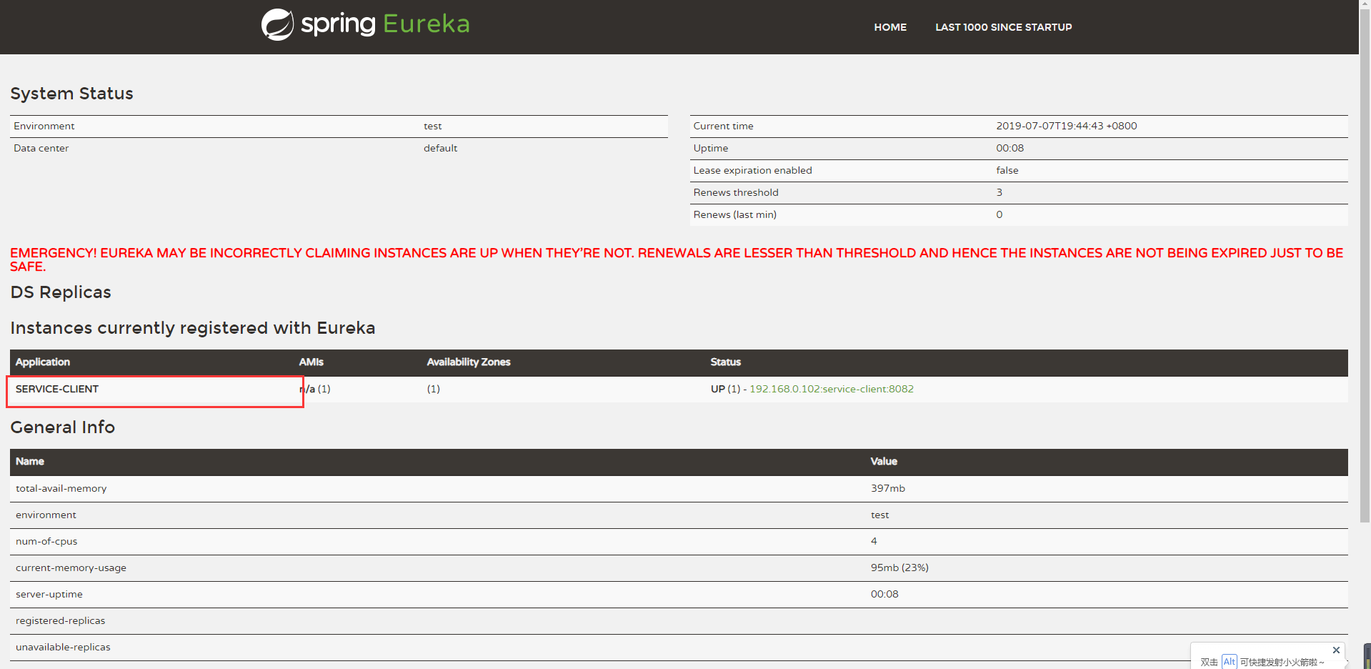注意矩形标记,此时我们已经成功的注册客户端service-client