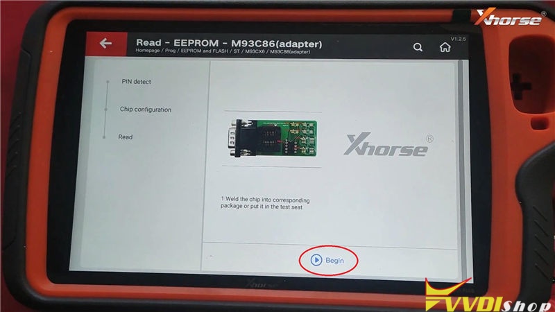 Prog >> EEPROM and Flash >> ST >> M93CX6 >> M93C86(adapter) >> Read >> EEPROM >> Begin