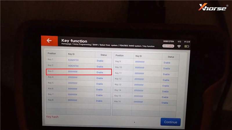 Go to “Prepare dealer key with ignition switch” >> Select a blank key position: Key 3