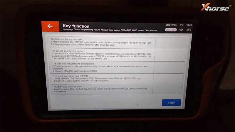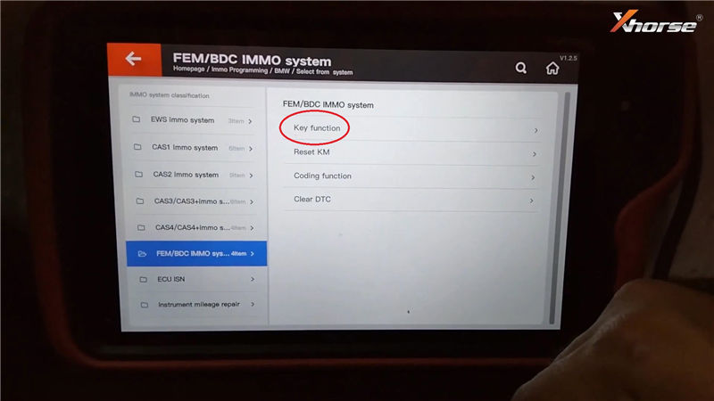 IMMO programming >> Europe >> BMW >> Select from system >> FEM/BDC IMMO system >> Key function >. Start programming