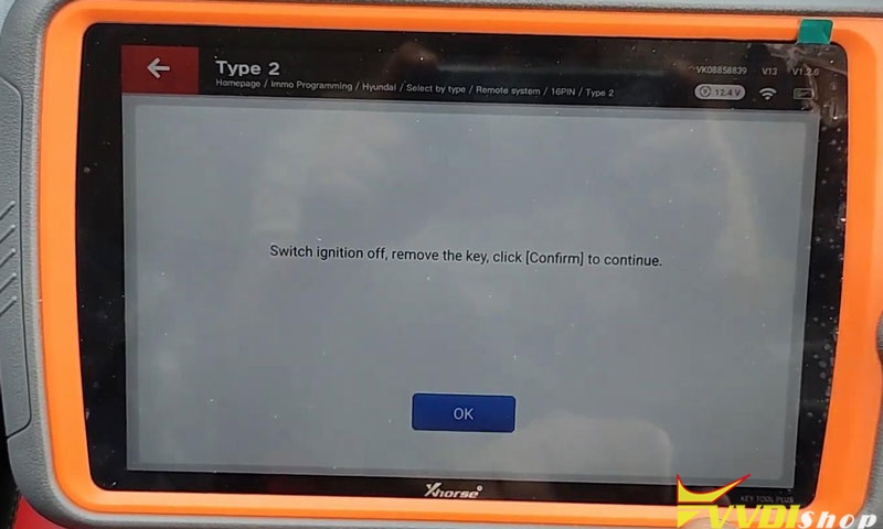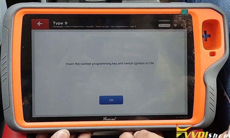 Insert the original key and switch ignition on ON. Press “OK”.