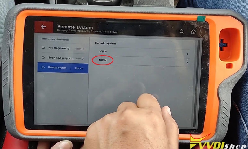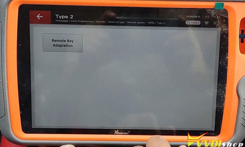 Remote system >> 16PIN >> Type 2 >> Start programming >> Remote key adaptation