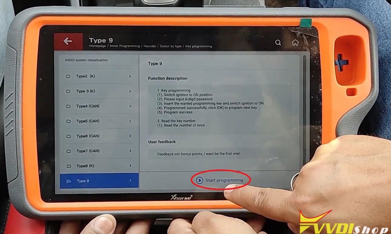 Immo programming >> Asia >> Hyundai >> Select by type >> Key programming >> Type 9 >> Start programming >> Key programming