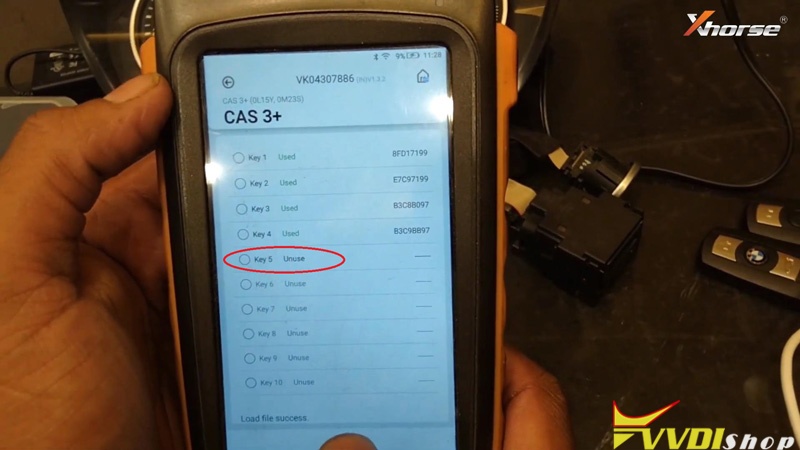 Select an unused key position: Key 5, press “Prepare dealer key”.