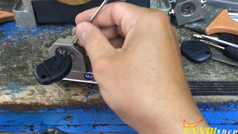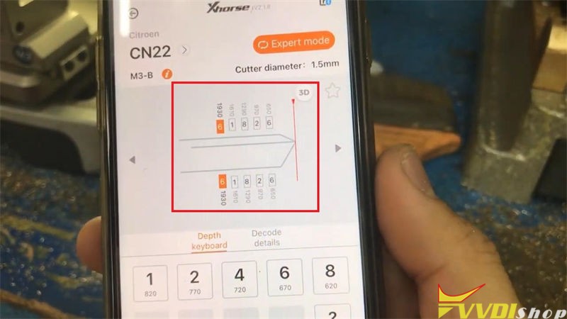 Using Xhorse Dolphin XP005 Key Cutting Machine to cut a Citroen CN22 key should be installed with M3-B clamp.