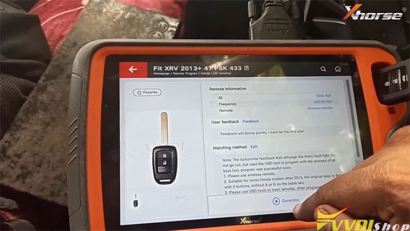Remote program >> Honda >> All remote >> Fit XRV 2013+ ID47 FSK 433 >> Generate