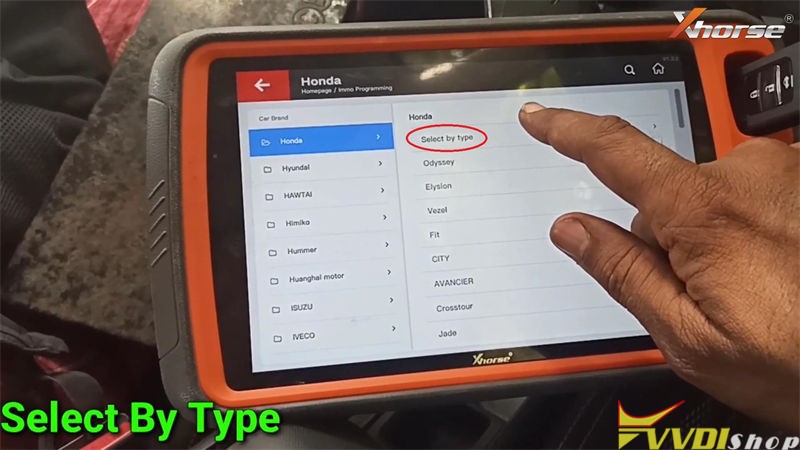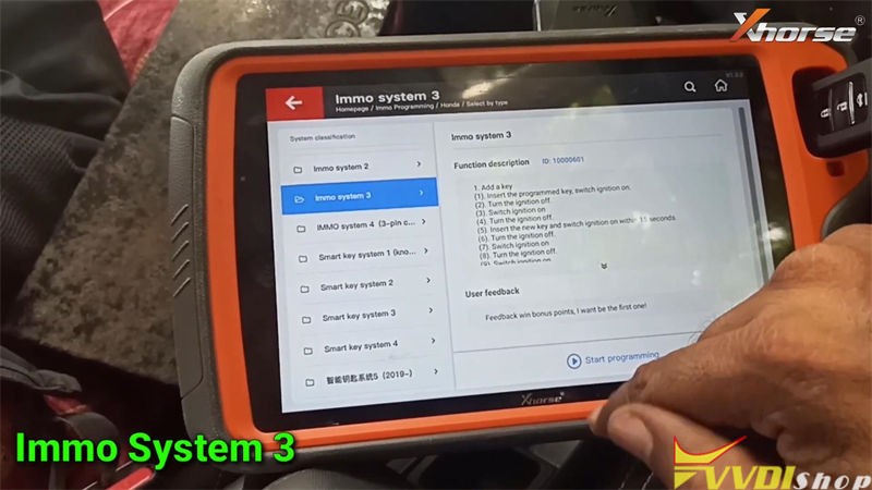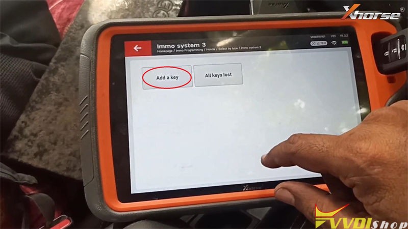 Immo programming >> Honda >> Select by type >> Immo system 3 >> Start programming >> Adds a key