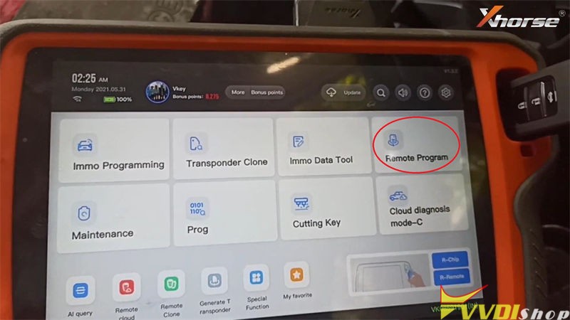 Connect VVDI Key Tool Plus with OBD, put Honda Universal Remote Key into slot.