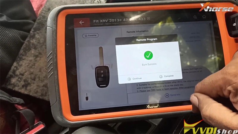 Xhorse VVDI Key Tool Plus Pad supports to program a new Honda WR-V ID47 smart key by OBD success.