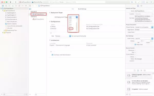 3、项目创建好之后,第一件事就是修改最低部署系统的Target版本: