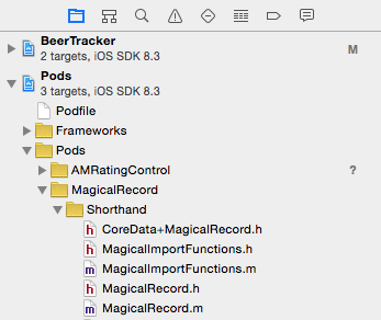 再次打开 Shordhand 文件夹,打开其下的 Support Files 文件夹下的 Pods-BeerTracker-MagicalRecord-prefix.pch 文件。这是整个工程的预编译头文件,其中有两行代码值得注意