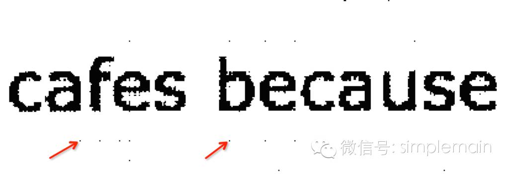 我们为什么要去掉噪点呢?我们把之前二值化以后的图具备放大: