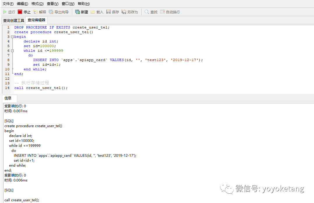 解决办法先删除名称,在第一行加一句: DROP PROCEDURE IF EXISTS create_user_tel;