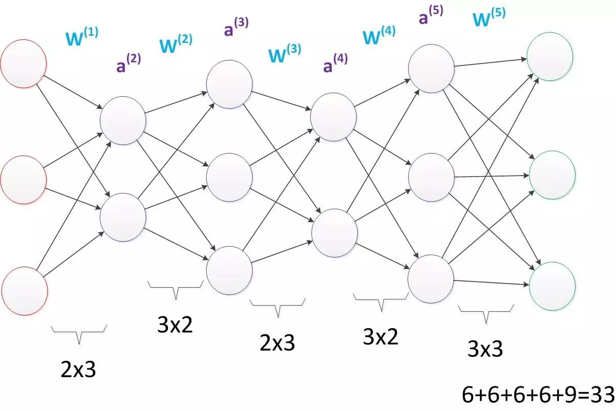 由此可见,多层感知机可以很好的解决非线性可分问题,我们通常将多层感知机这样的多层结构称之为是神经网络。但是,正如Minsky之前所担心的,多层感知机虽然可以在理论上可以解决非线性问题,但是实际生活中问题的复杂性要远不止异或问题这么简单,所以我们往往要构建多层网络,而对于多层神经网络采用什么样的学习算法又是一项巨大的挑战,如下图所示的具有4层隐含层的网络结构中至少有33个参数(不计偏置bias参数),我们应该如何去确定呢?