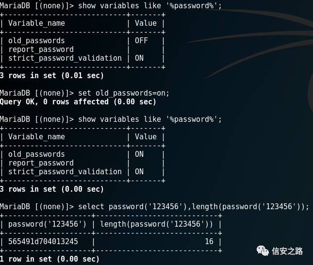 使用这种加密需要设置mysql,打开old_passwords选项,使用如下命令打开: