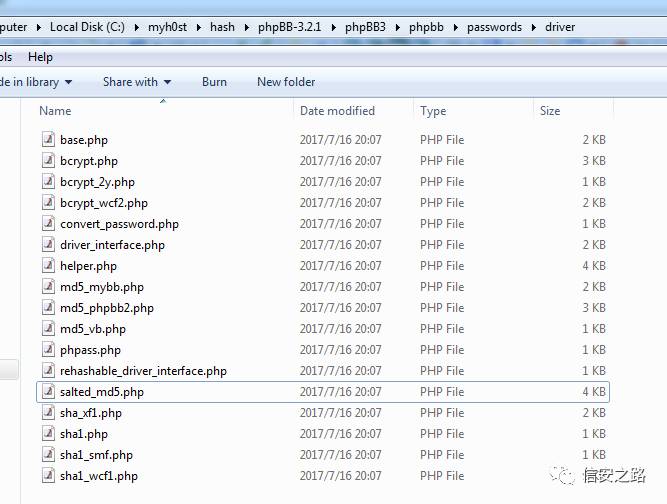 如果获取到hash?我是新安装了了一个phpBB3的程序,从数据库里查出来的。对于不同版本的phpbb有不同的加密方式,下图中所有加密方式,都是phpbb曾经用过的,不同的版本hash有不一样的特征,需要一个一个的测试,有兴趣的小伙伴可以挨着测试一下。