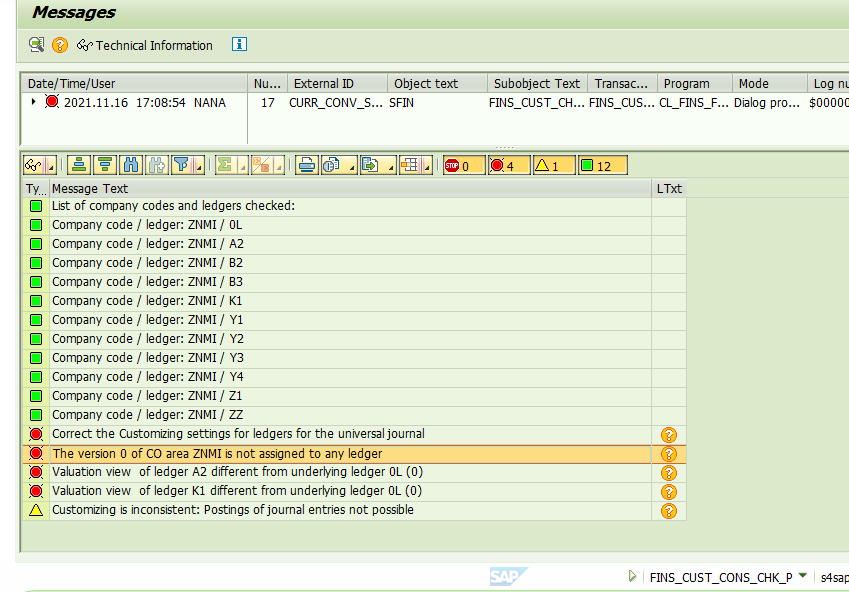 The version 0 of CO area ZNMI is not assigned to any ledger