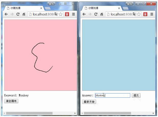 到这里,游戏已经可以玩啦!不过还有很多细节是有待加强和修改的,比如可以给画笔选择颜色啊,多个用户抢答计分啊等等。