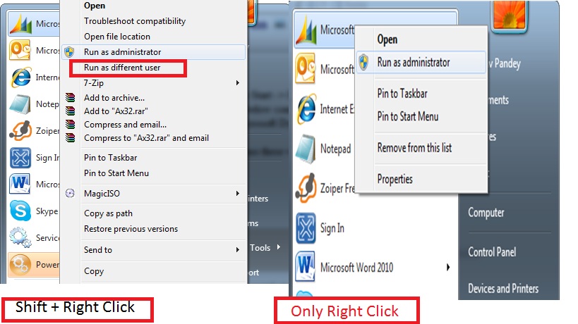 While working with Workflow, many time there was situation where I would like to run AX as different user , But on Window 7 , "Run as" is not available ,when you right click.
