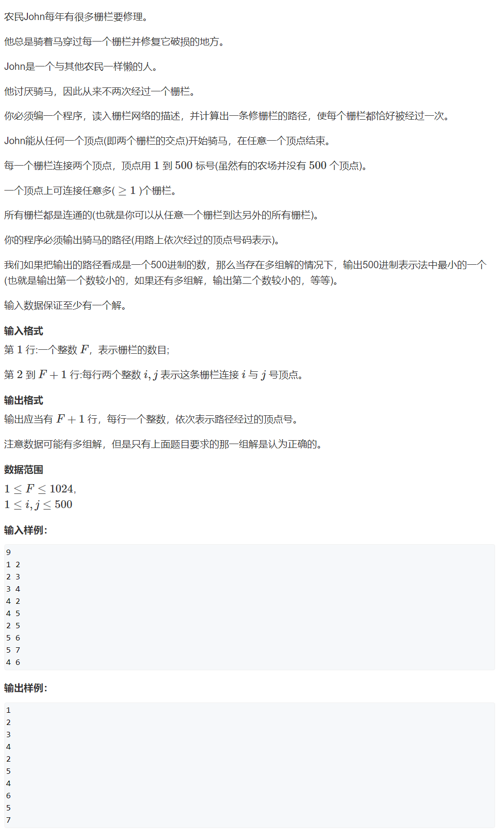 本题核心为无向图求欧拉路径,但题目有两点特殊之处:
