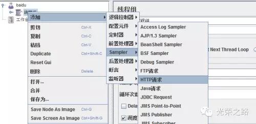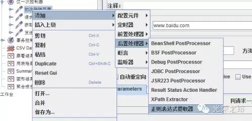 访问百度后,服务器会立刻分配一个BAIDUID的cookie,我们需要提取这个cookie,完成后续的认证,右击这个http请求,添加一个正则表达式提取器