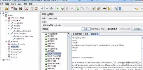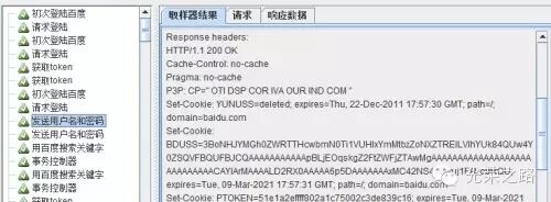 post请求之后,服务器校验用户名密码是否匹配,如果通过,服务器会发送cookie到浏览器,ok,再次用正则表达式提取,这次需要提取两个cookie,SAVEUSERID和BDUSS(不要忘记将这两个添加到cookie管理器中)