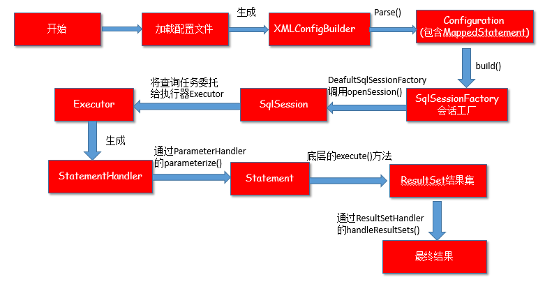 SqlSession根据Statement ID, 在mybatis配置对象Configuration中获取到对应的MappedStatement对象,然后调用mybatis执行器来执行具体的操作。